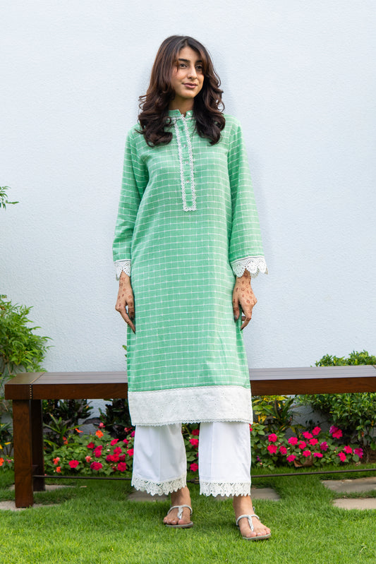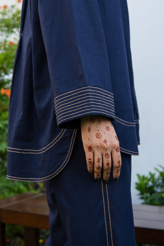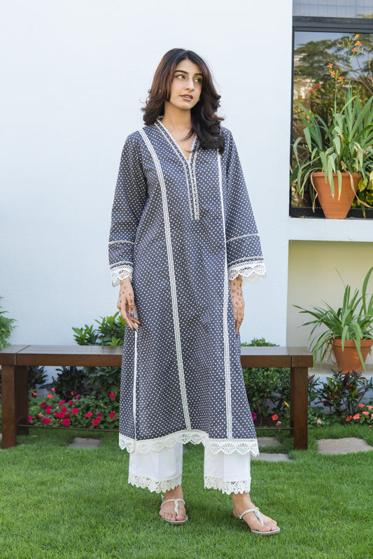 NAVY BLUE KURTA WITH LACING ON DAMAN