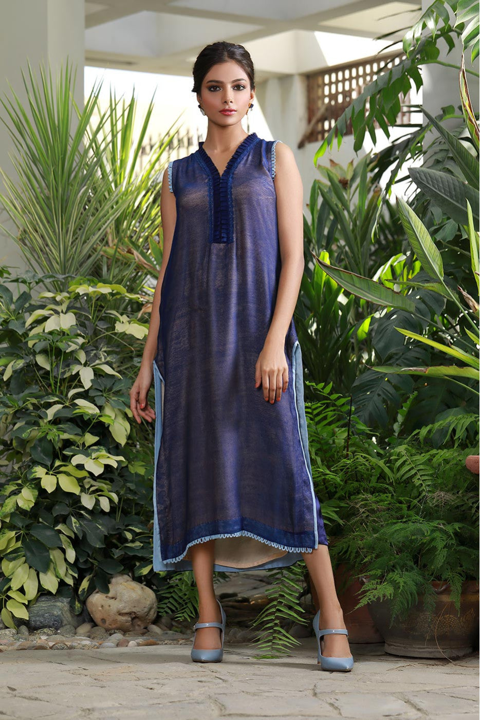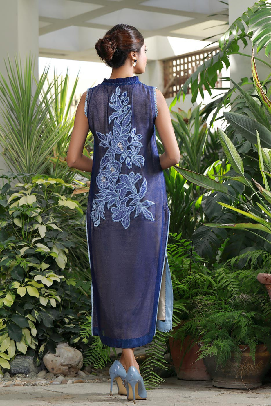 Smart cut straight shaded shirt with embroidered and appliqued back, You can pair it with the pants & dupatta.Care Instructions