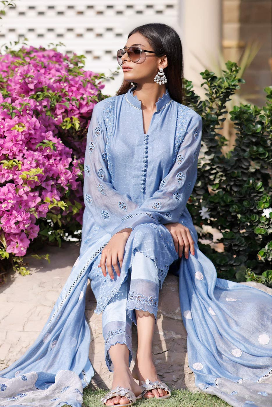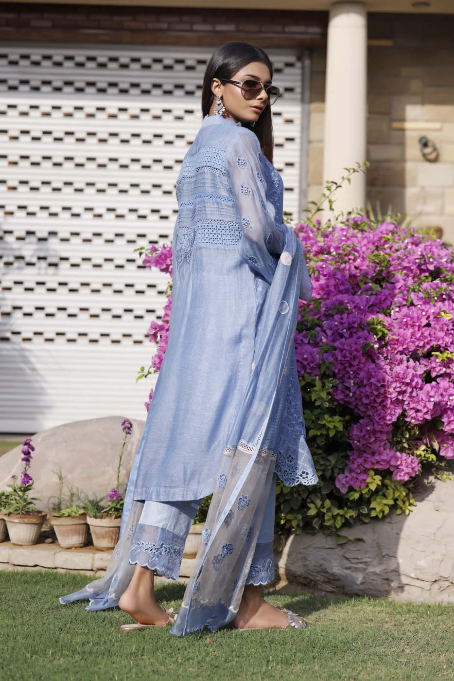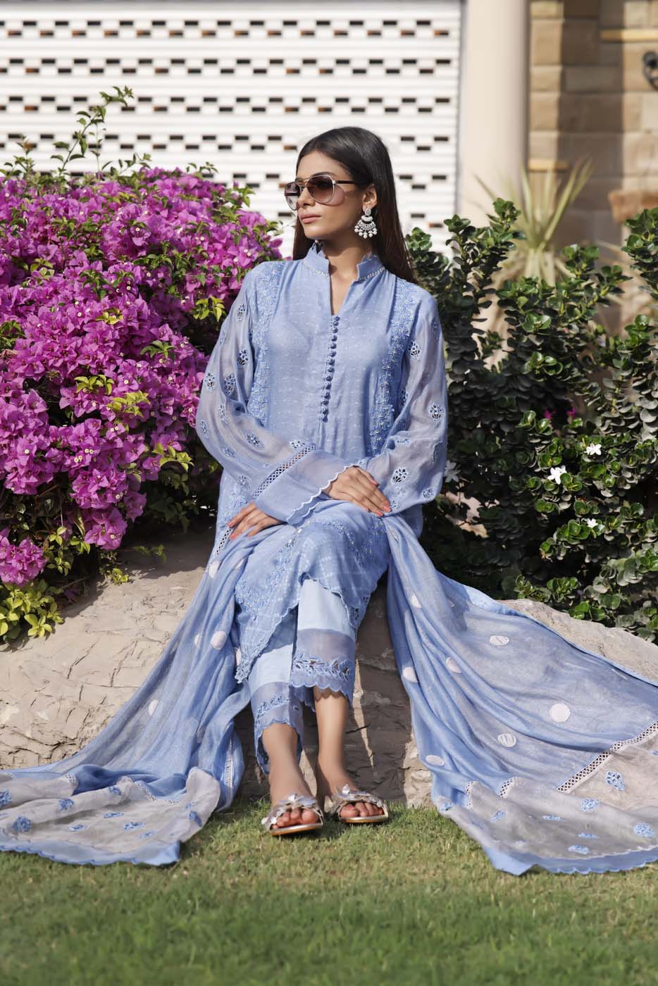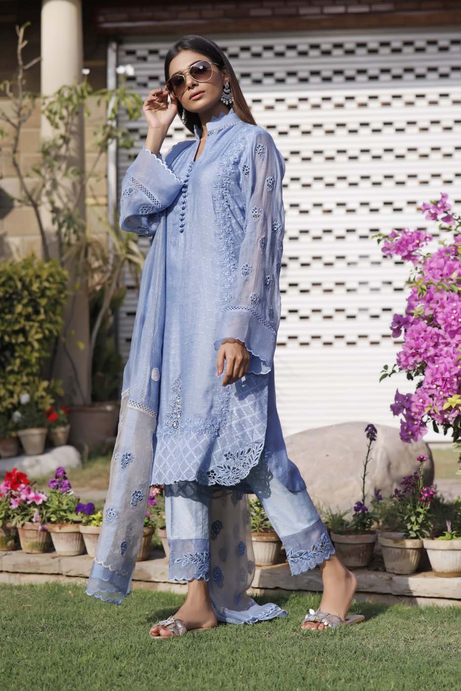 This Blue detailed shirt with lace and cut work. Compliment it with our pretty polka dot two shade dupatta and cutwork trousers.Care Instructions