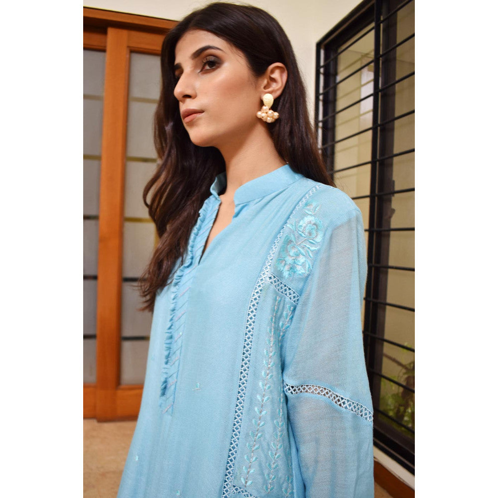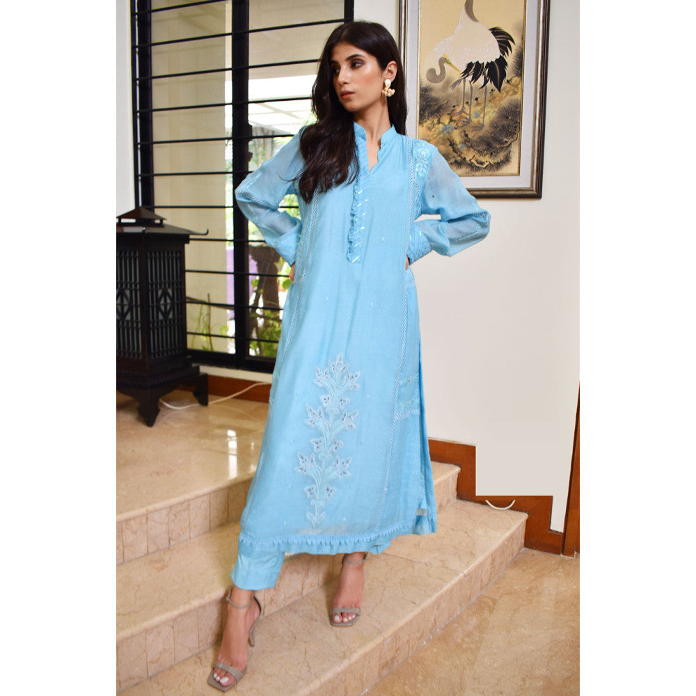 Cotton net shirt with cut work embroidery all over. You can pair it with pants and dupatta.