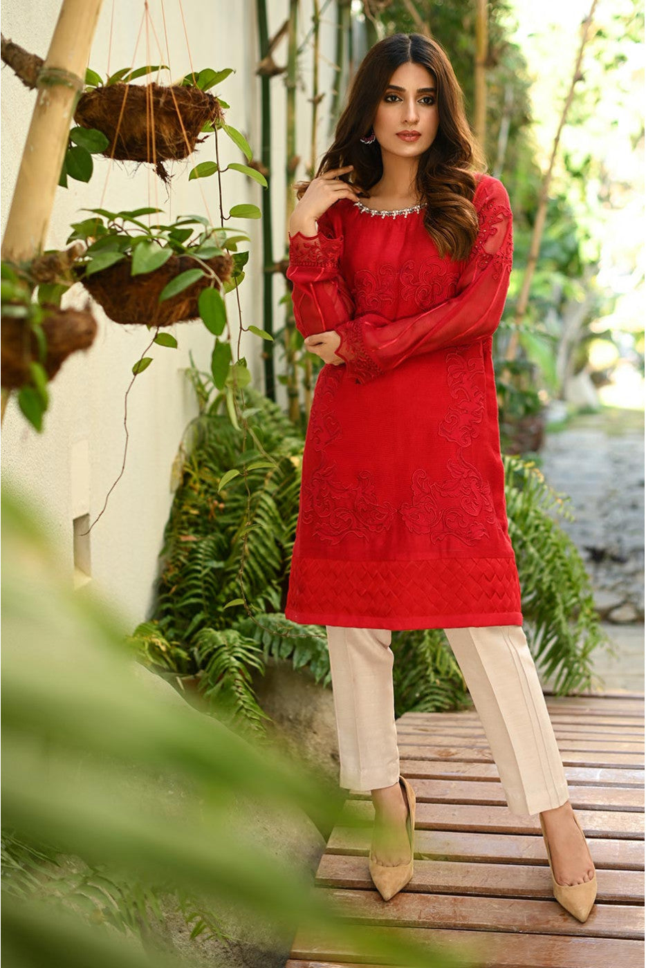 Cotton net baroque designed appliqué tunic with detailed neckline. Appliqué design on both front and back. Daman is weaved with organza crisscross for finishing.Care Instructions