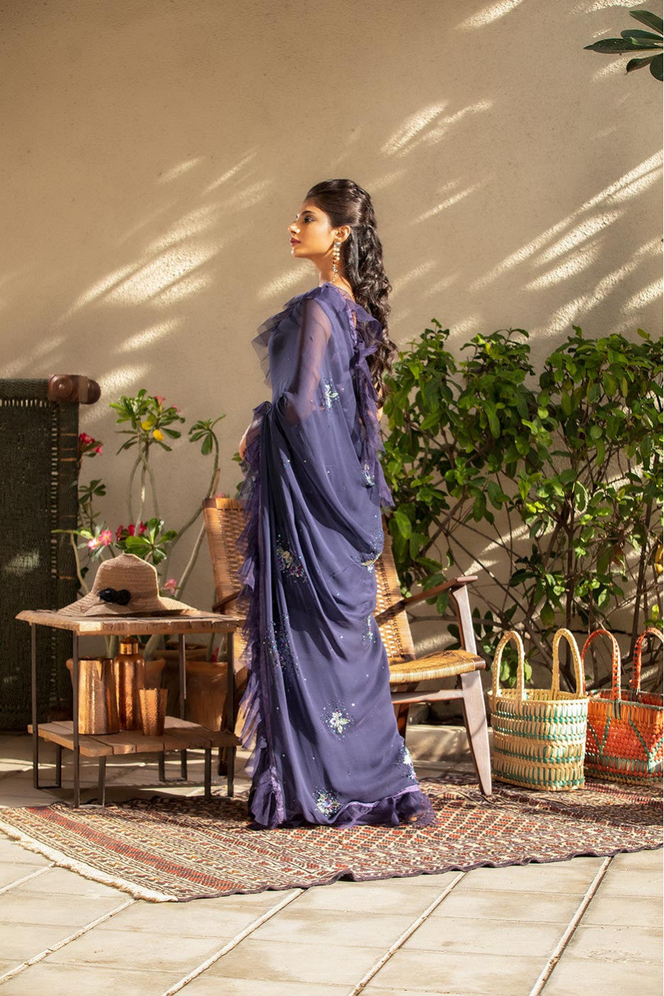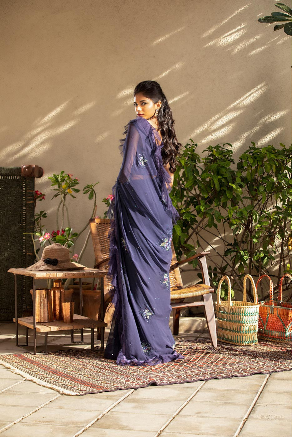 Pure chiffon saari with delicate floral embroidered palu and sequins spray.Care Instructions