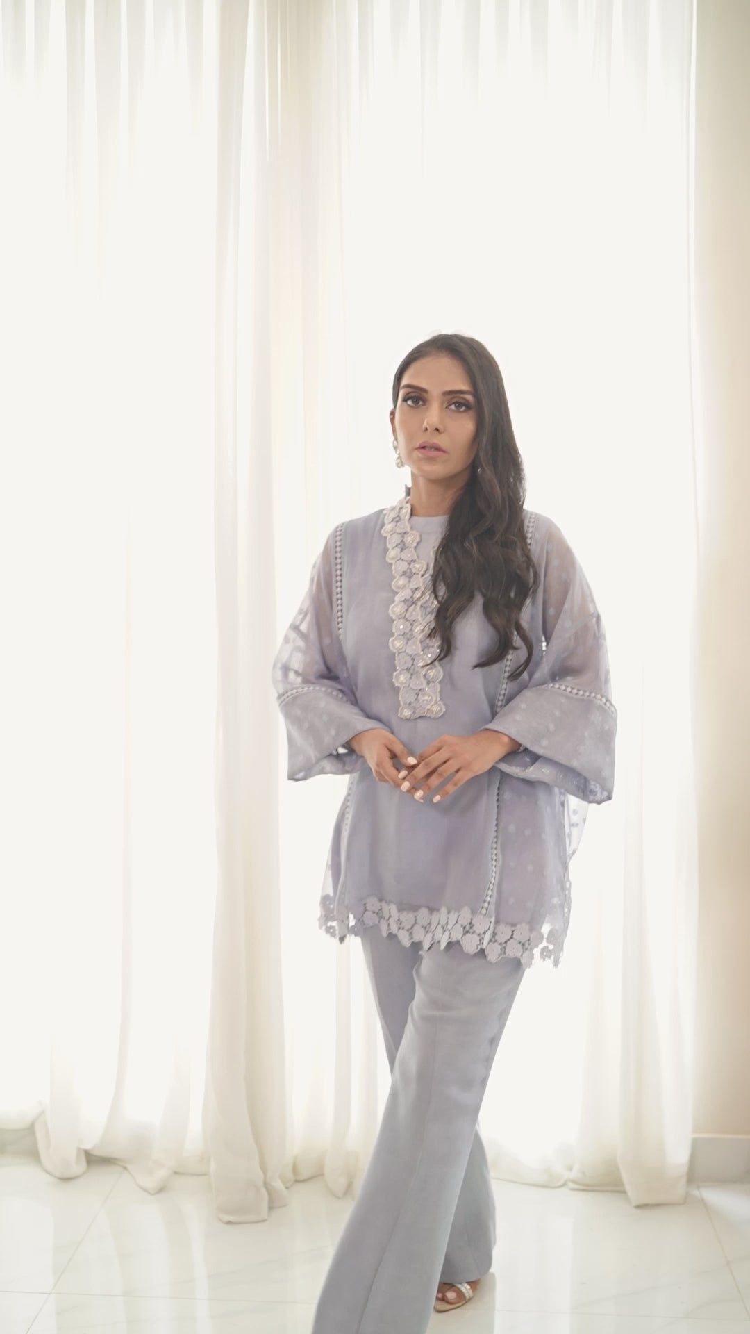 Elevate your summer wardrobe with this chic poncho-style short top, featuring a beautifully embroidered neckline. Ideal for hot-weather occasions, it pairs effortlessly with bootcut pants for a flawless, breezy look.