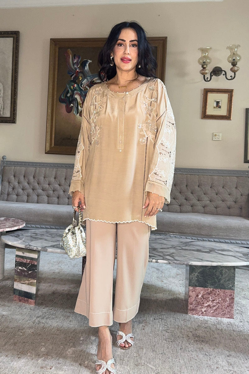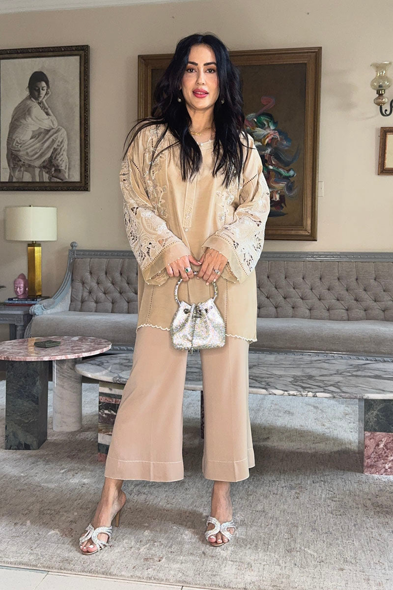 This dreamy boxy cut set bursting with delicate french knot embroidered motifs and lots of detailing.
