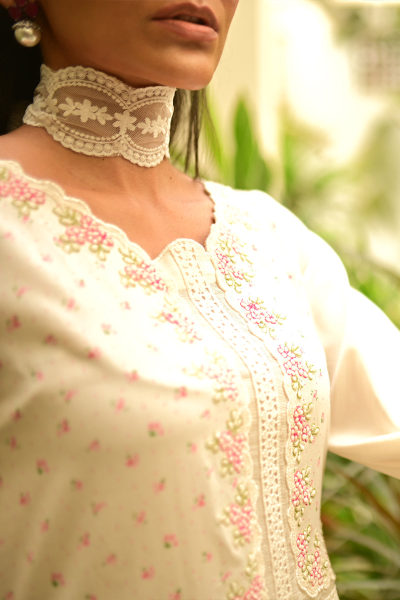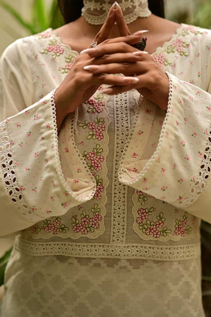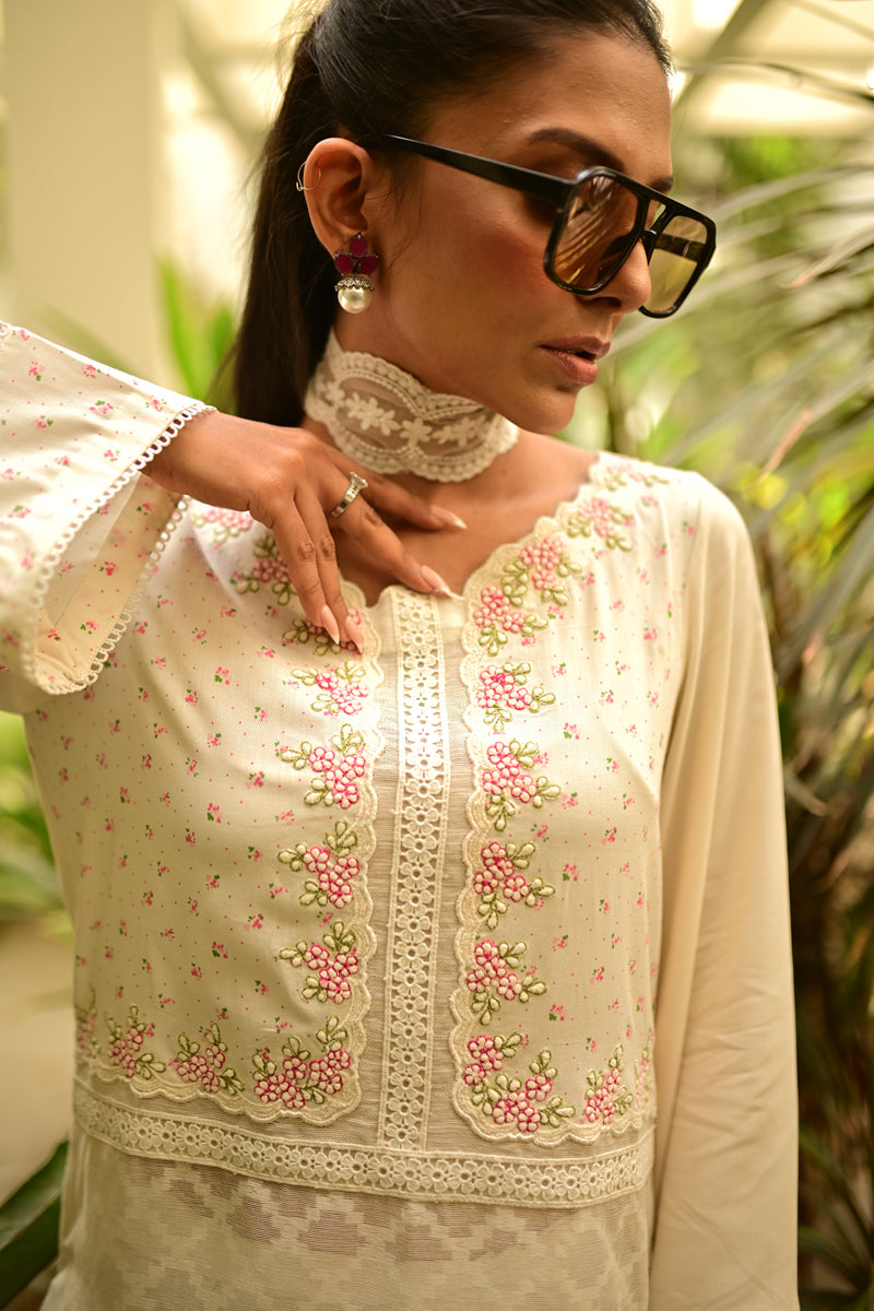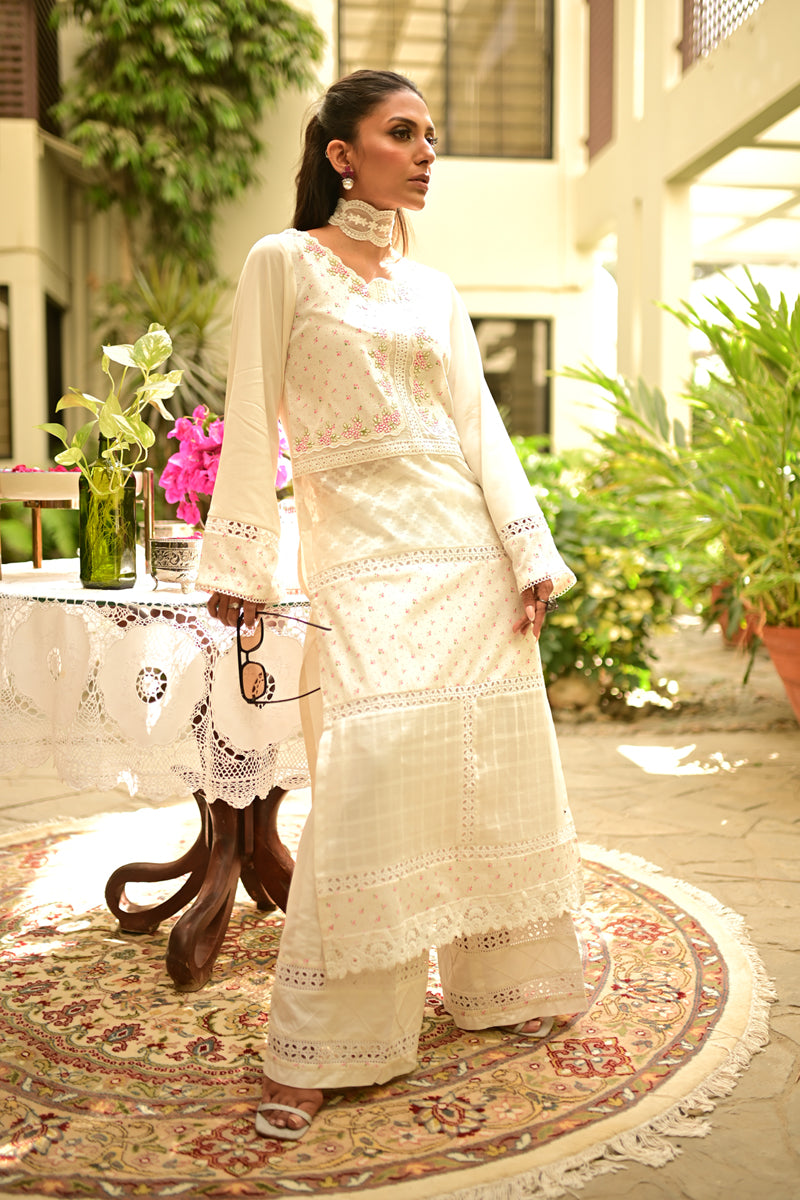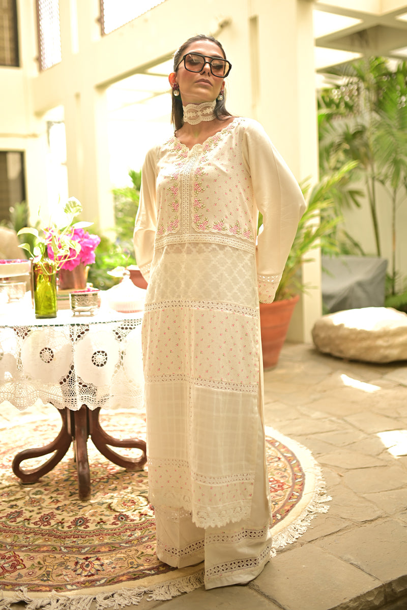 Soft, romantic, and effortlessly elegant. Cherry Bloosom features delicate floral embroidery on premium blush lawn, finished with intricate lace details. Paired with matching trousers and a dupatta, this 3-piece set is perfect for summer brunches or intimate gatherings.