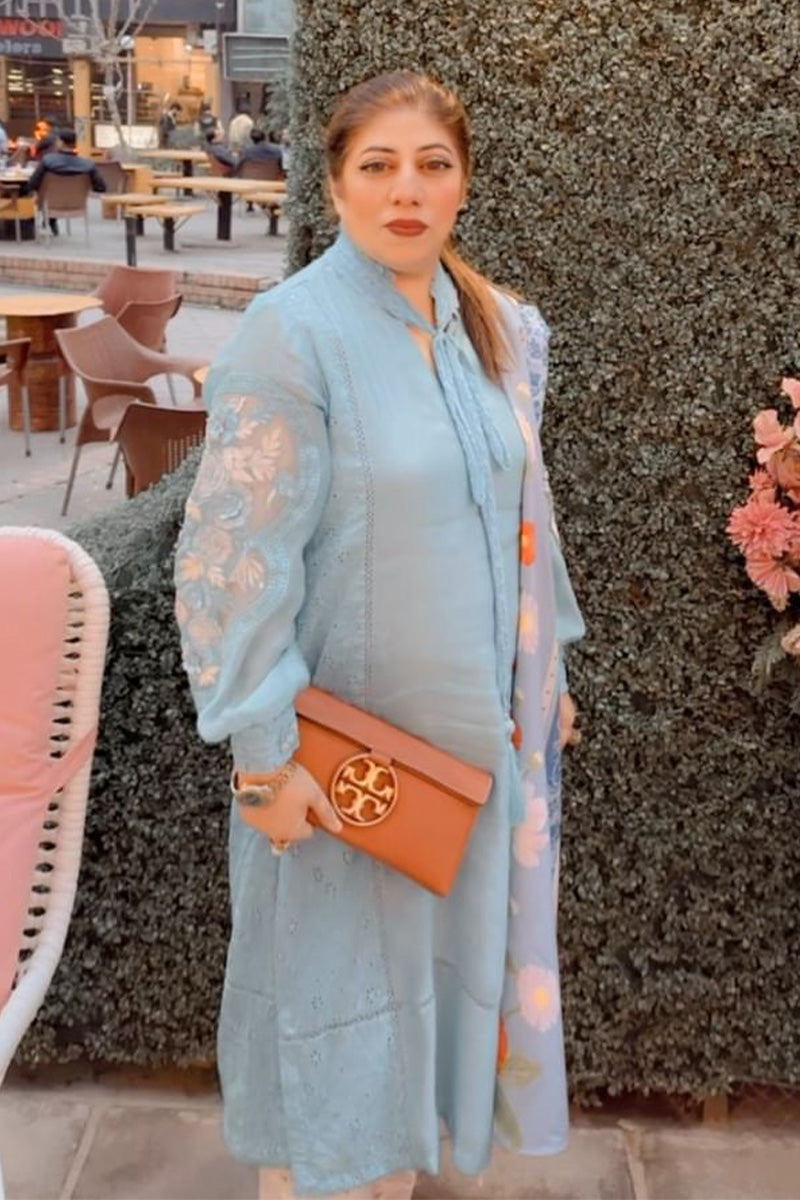 A cotton net and chikan detailed shirt with beautiful embroidered sleeves, detailed with a lacy tie up neck pati. You can pair it with culottes.