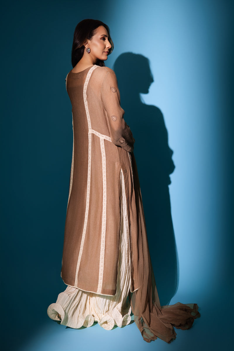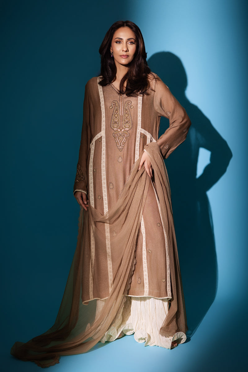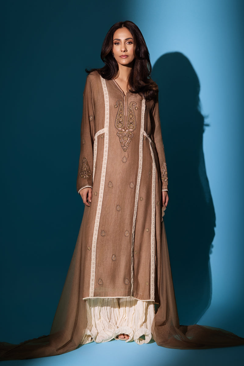 Kalidaar kurta with embroidered neckline and motif over all the front.Care Instructions