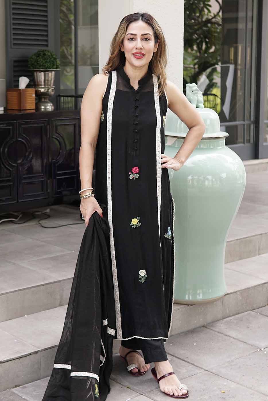 Cotton net long shirt with embroidered floral motifs all around the front with crochet lace detailing.Care Instructions