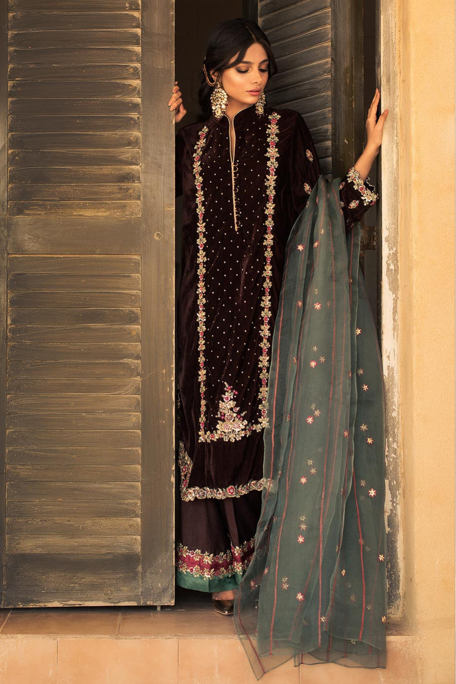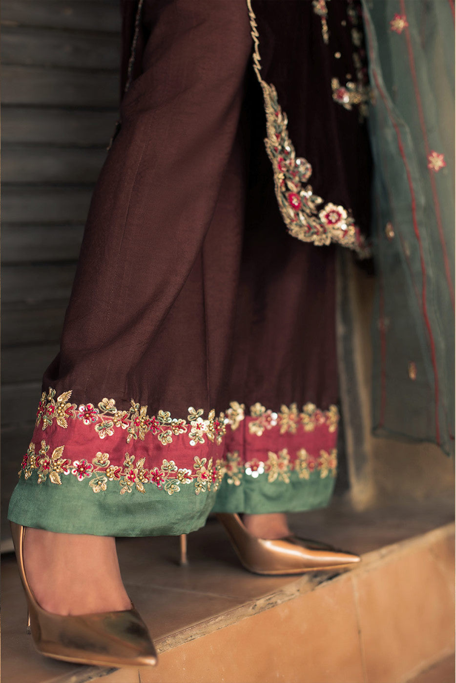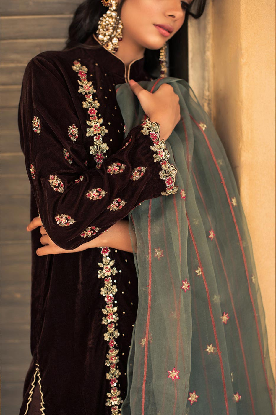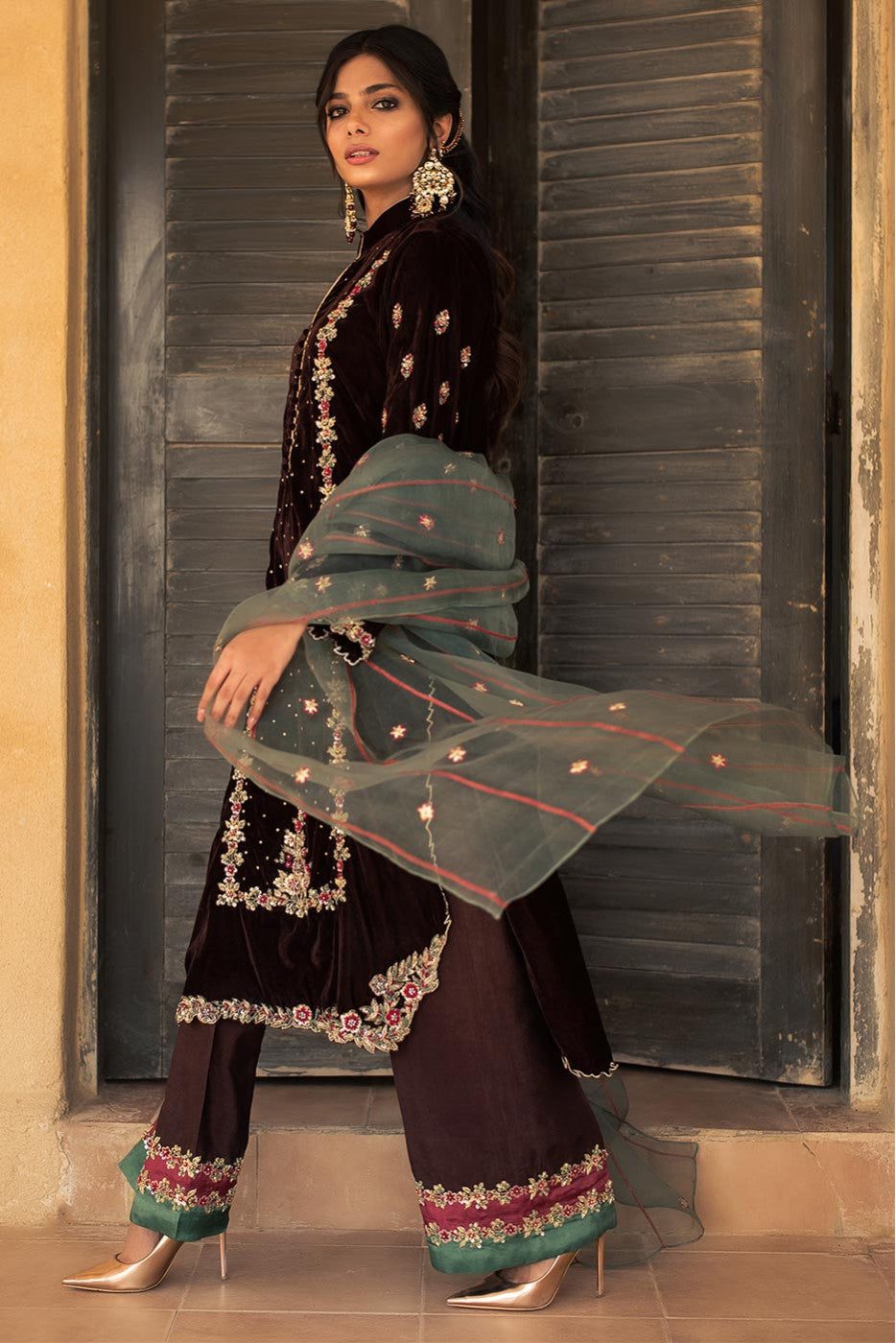 A beautiful velvet kurta with chatta patti, hand embroidered in sequins, resham and beads. You can pair it with embroidered wide trousers and embroidered organza dupatta.Care Instructions