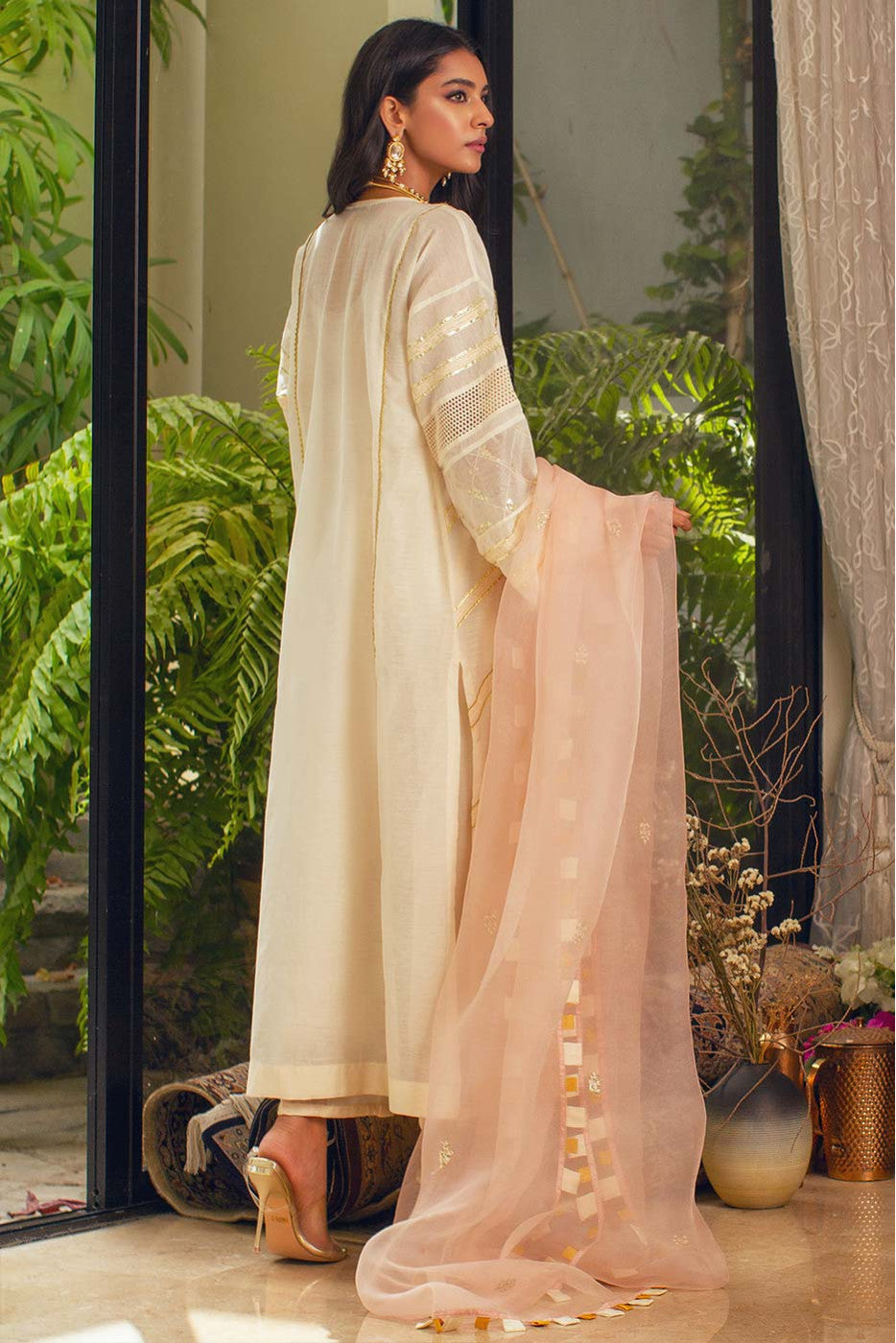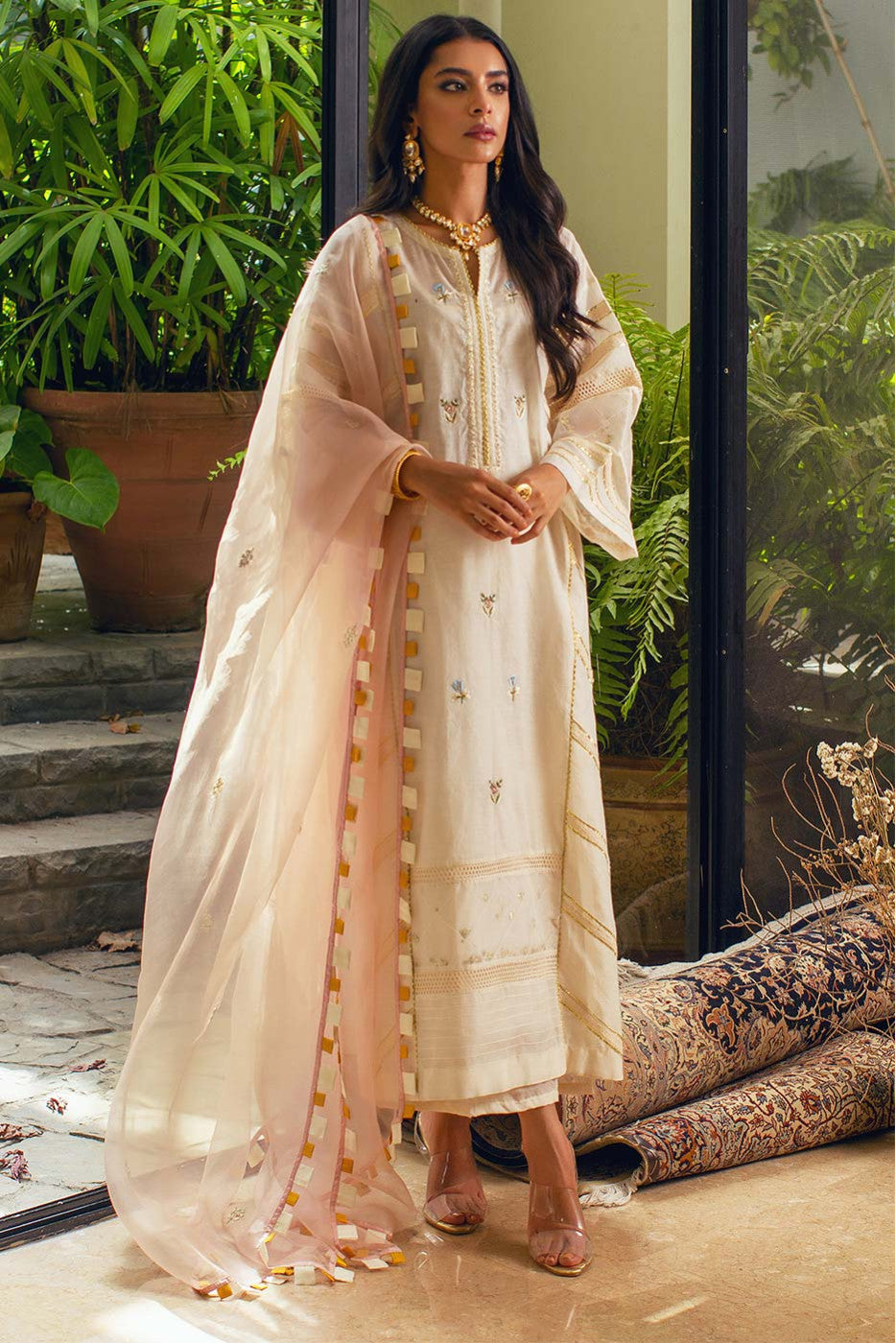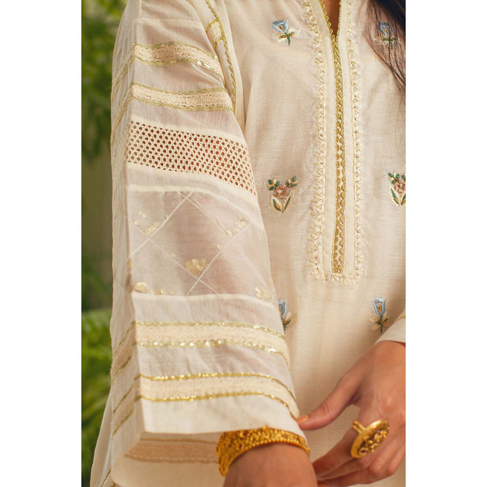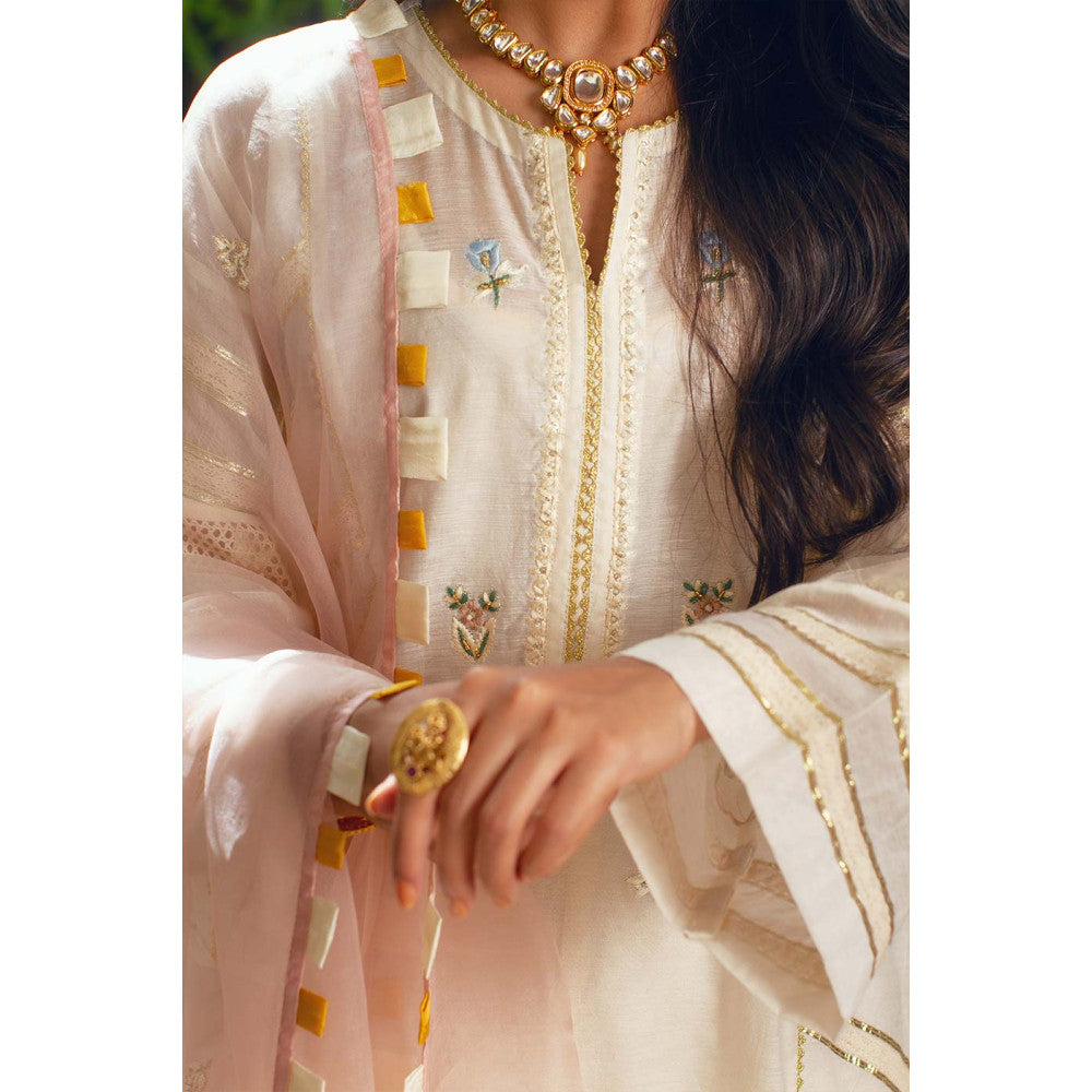 A kurta with gotta and crochet lace detailing, embroidery on the front panel and detailed sleeves. An extraordinary classic piece for your collection.Care Instructions