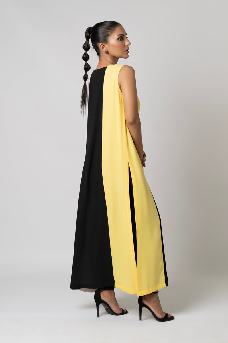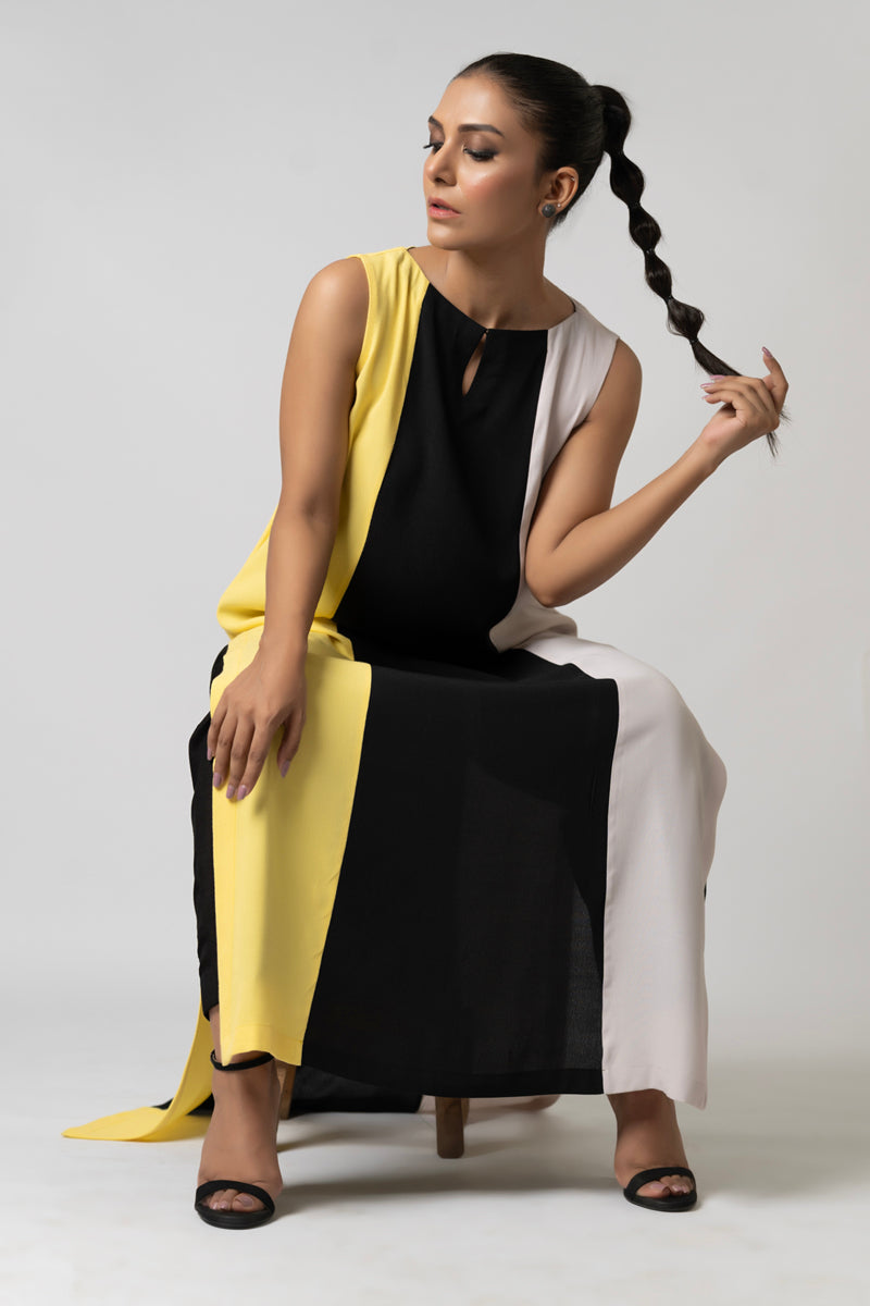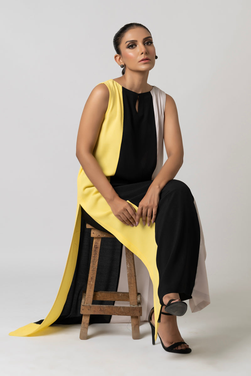 A sleek long paneled shirt in soft Korean Crepe, paired with straight pants for a minimalist, polished look. Perfect for effortless day-to-night style.