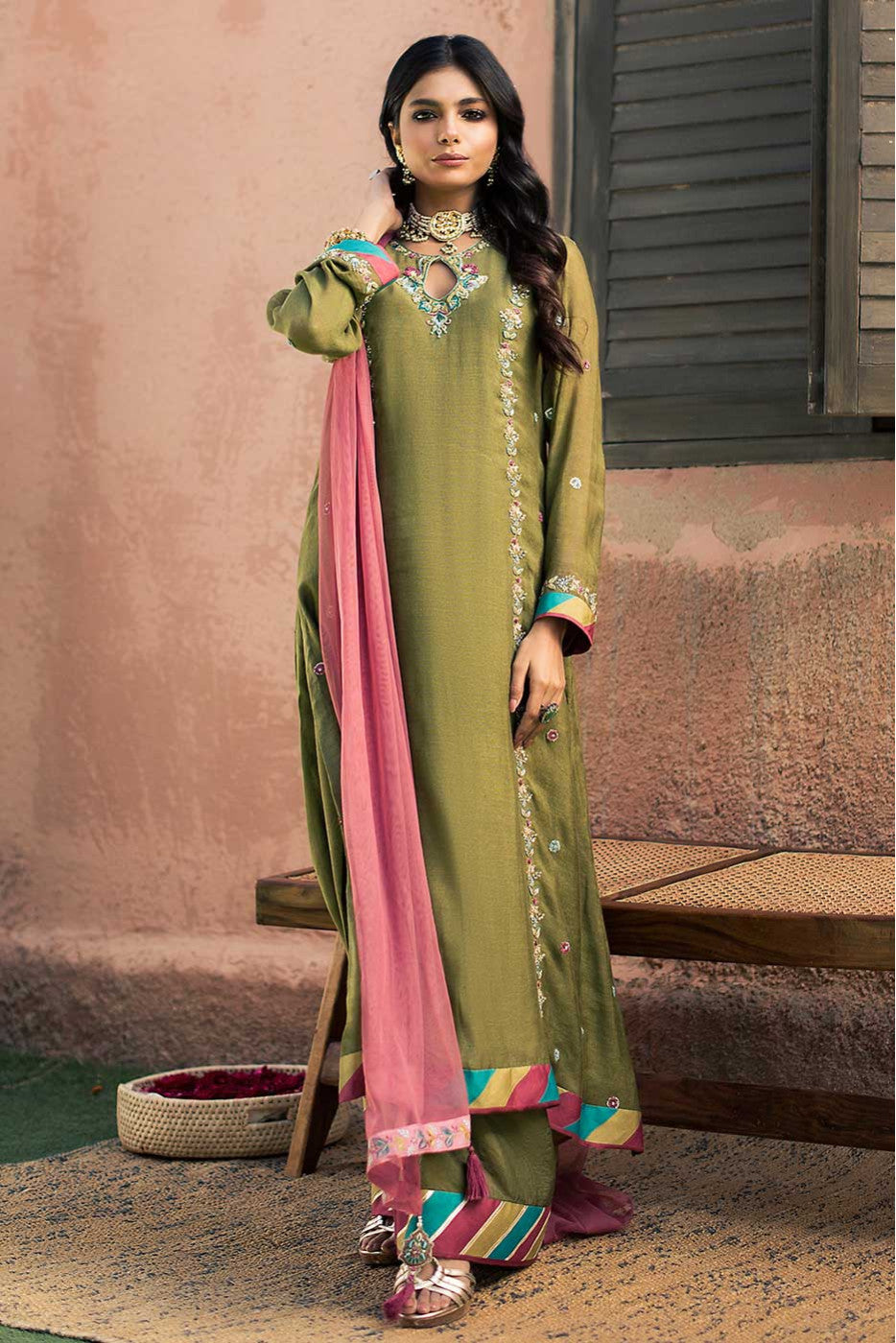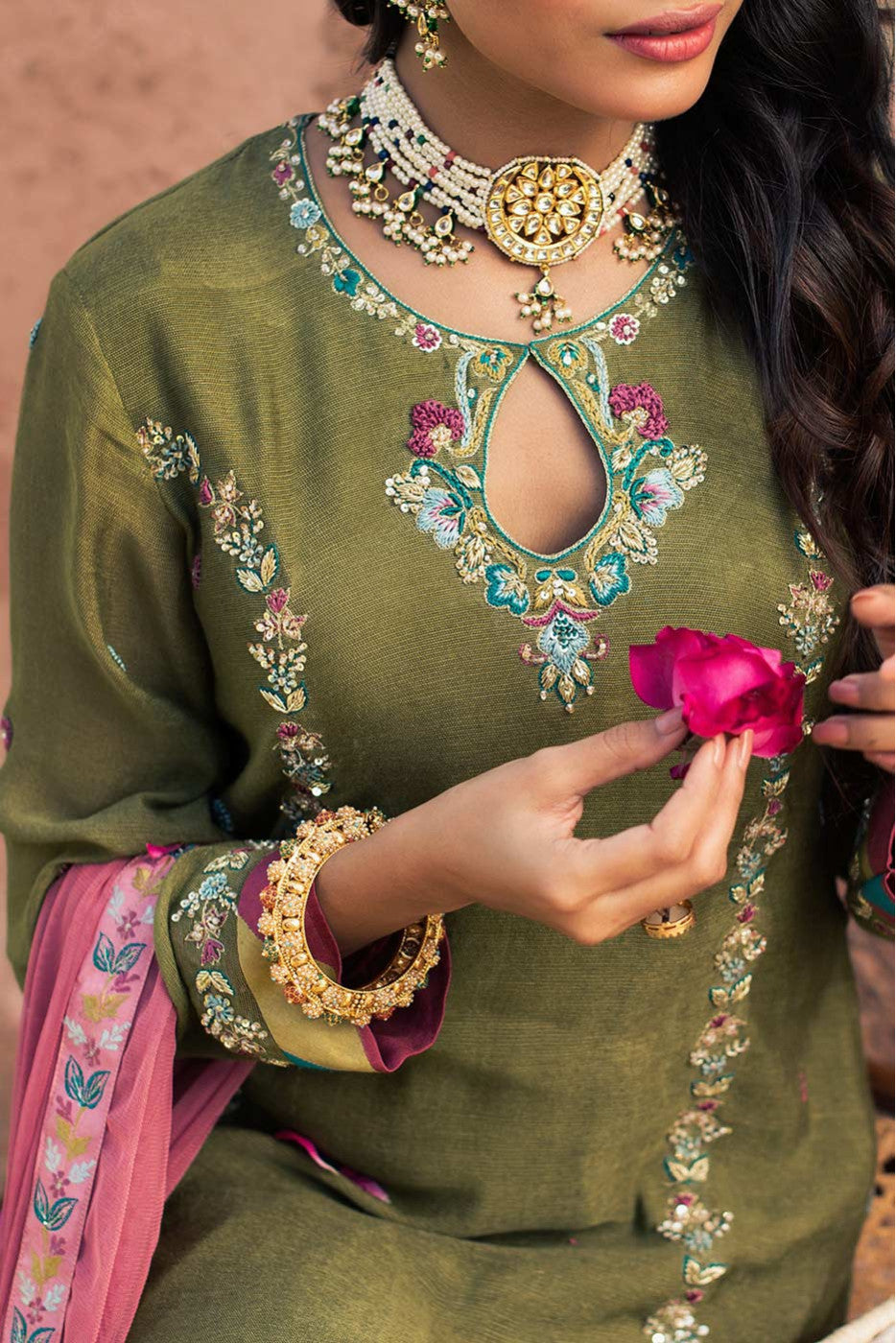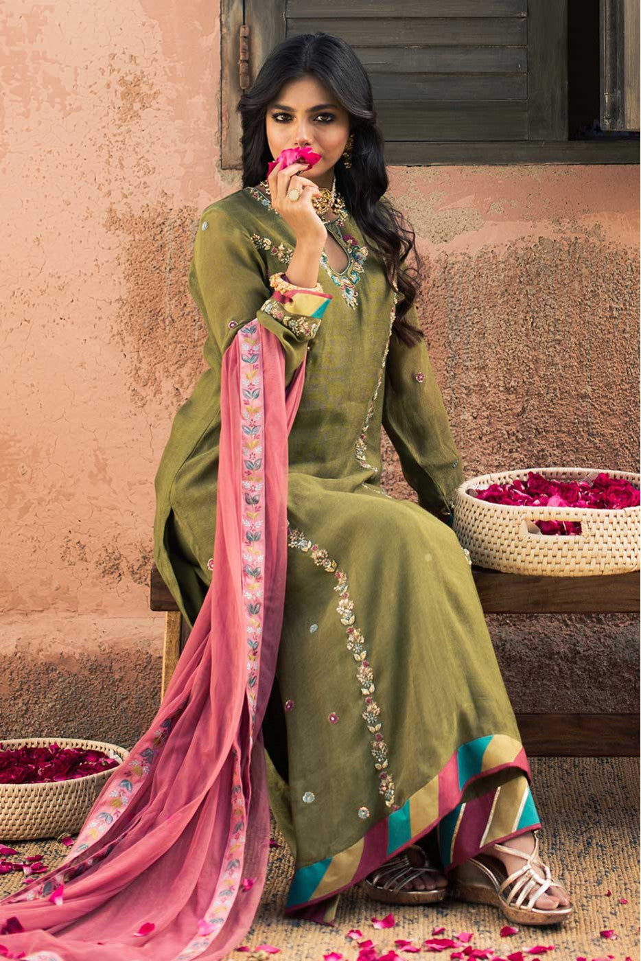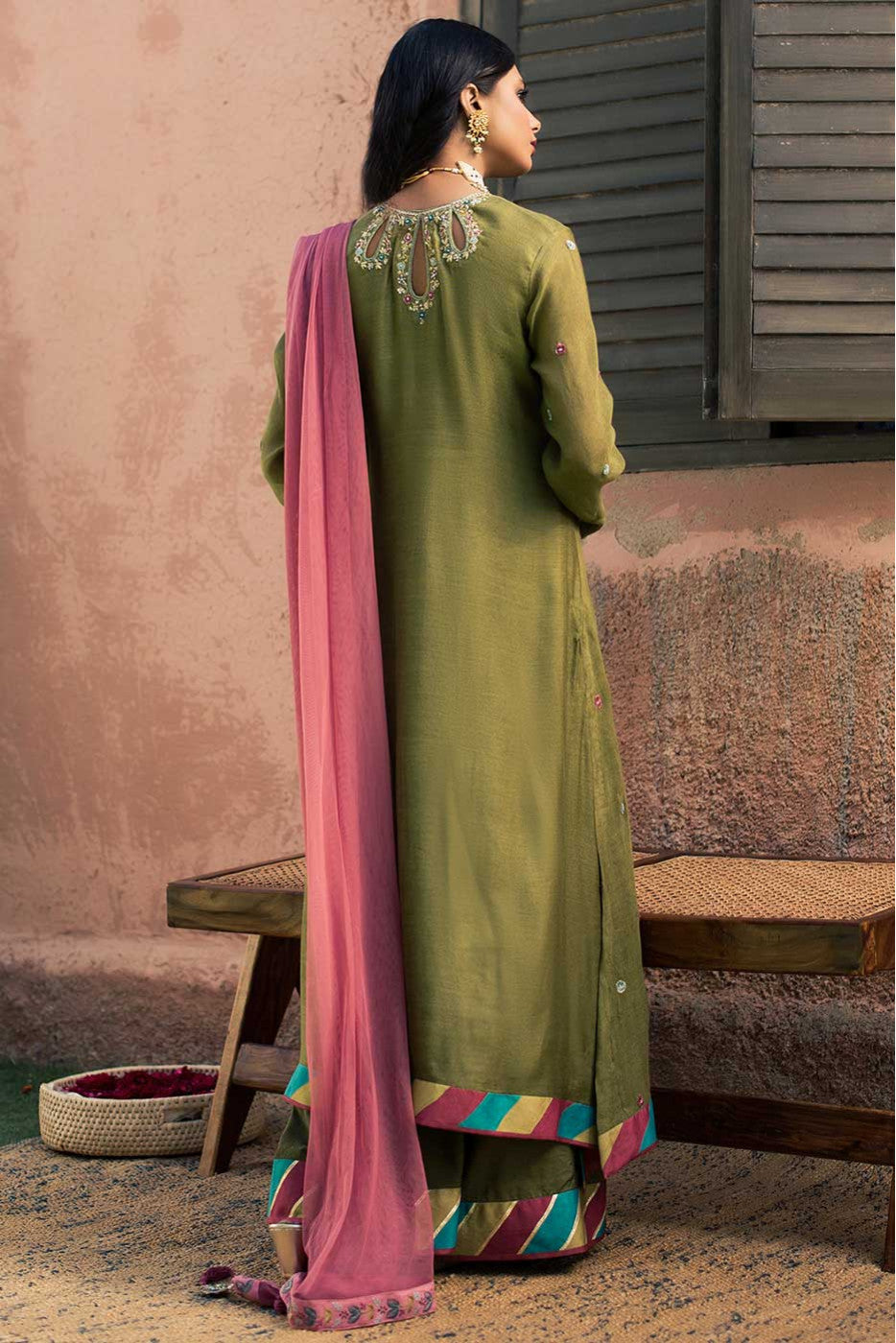A line 2 kali kurta with very intricate hand embroidered gala panel pati and back in resham, zari crystals and stones.