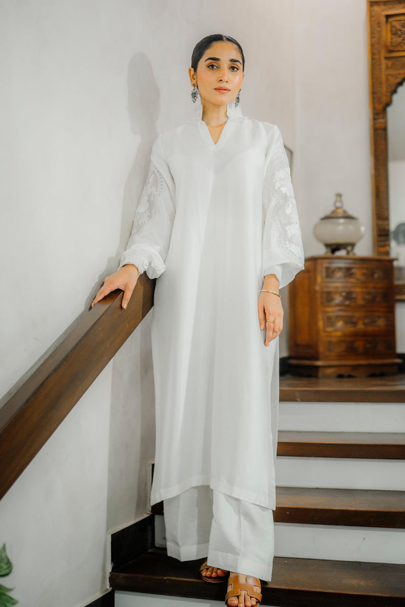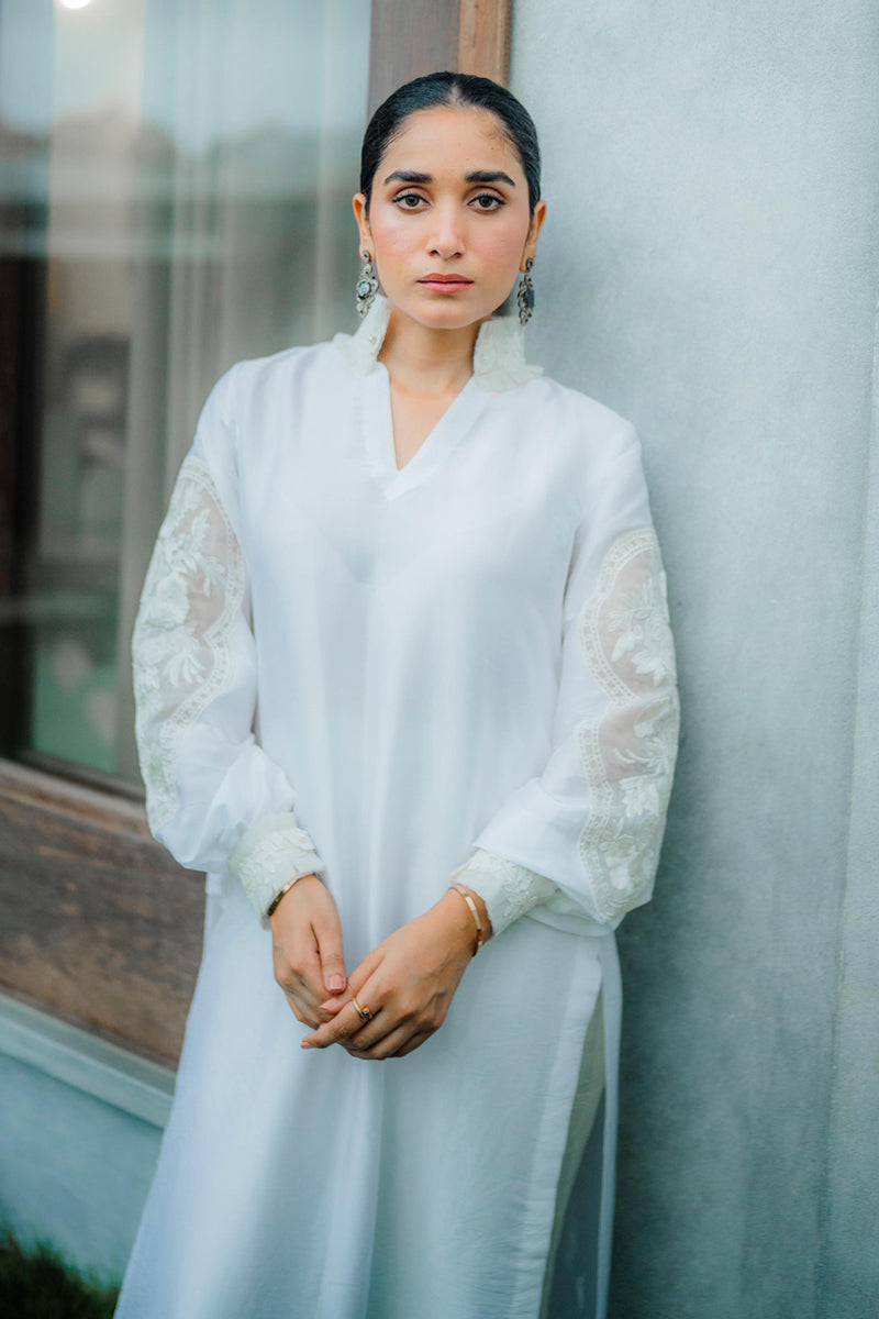 Silk kurta with detailed embroidered sleeves.